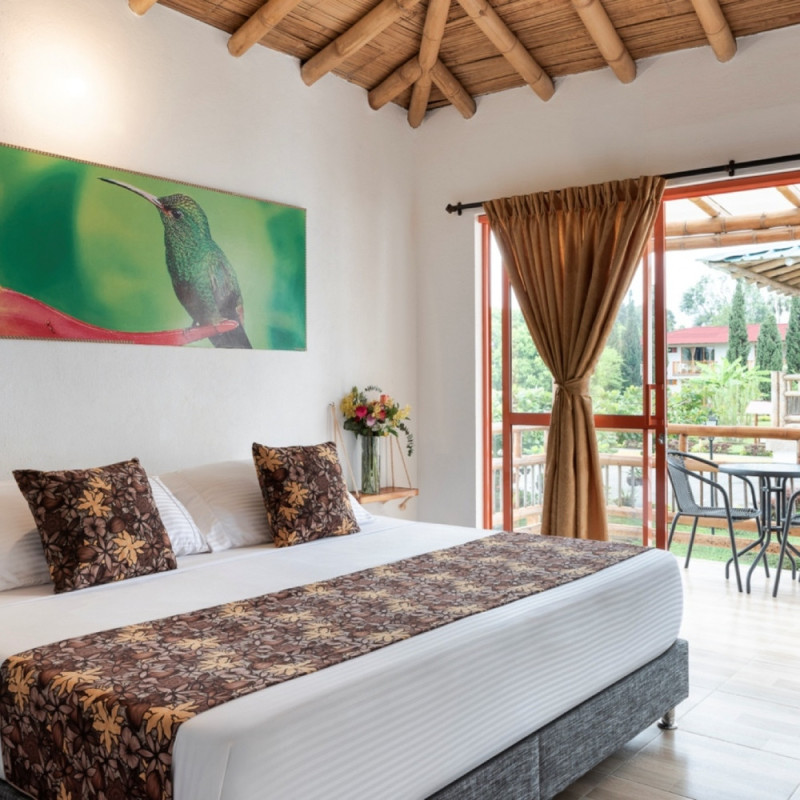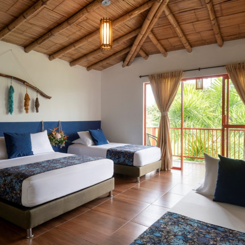 Hospédate en el acogedor Hotel Campestre La Aldea, desde habitación sencilla hasta séxtuple, donde el confort de nuestras habitaciones, el trato cálido de nuestro equipo y los paisajes inigualables se combinan para ofrecerte tranquilidad, conexión con la naturaleza y espacios para tu bienestar físico, mental y emocional.